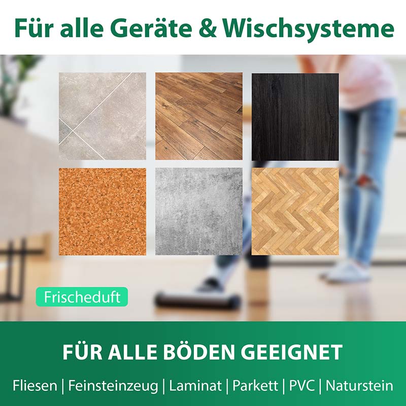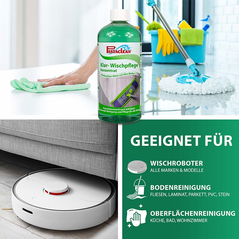 - 💧 Perfekt für Wischroboter & Saugwischer – Die schaumarme Formel ist speziell für moderne Wischroboter und Saugwischer entwickelt und schützt zuverlässig Dichtungen und Technik. Ideal auch für alle anderen Wischsysteme wie Wischmopp, Bodentuch oder Sprühwischer geeignet. Ebenso zur manuellen Oberflächenreinigung verschiedenster Bodenarten und Flächen anwendbar.