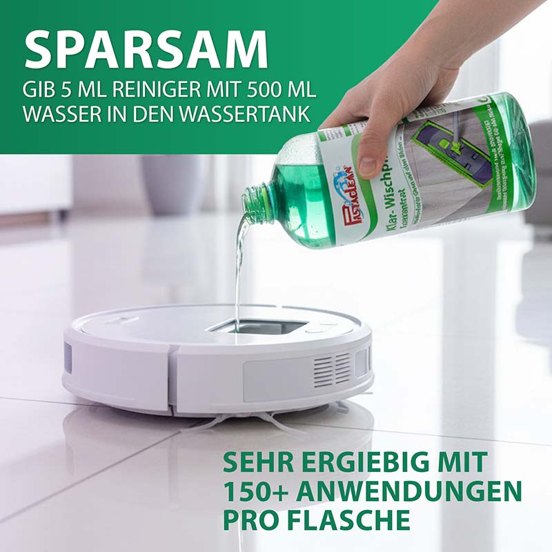 - 💧 Hochkonzentriert & ergiebig – Nur 10 ml auf 4 l Wasser genügen für manuelle Wischsysteme. Für Wischroboter oder Saugwischer reichen 5 ml auf 500 ml Wasser. Ein Liter Konzentrat ergibt Hunderte Anwendungen – nachhaltig und kosteneffizient.