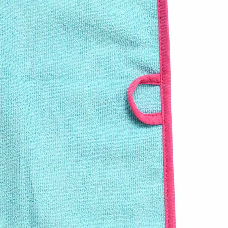 Dank der integrierten Kapuze mit Gummiband lässt sich das Handtuch sicher und rutschfest über Trainingsgeräte, Hantelbänke oder Yogamatten hängen. So bleibt es an Ort und Stelle und schützt die Geräteoberflächen vor Schweiß.