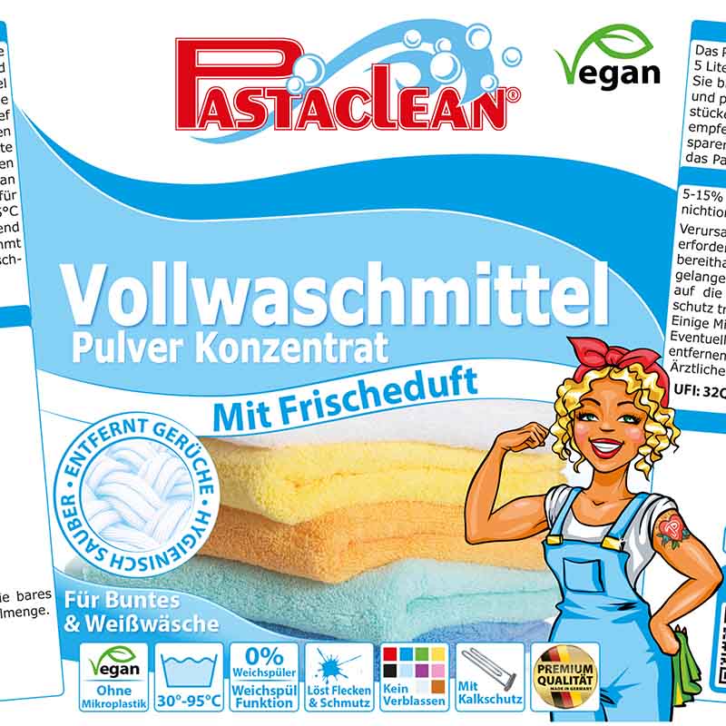Das Pastaclean Vollwaschmittel ist zudem frei von Mikroplastik.